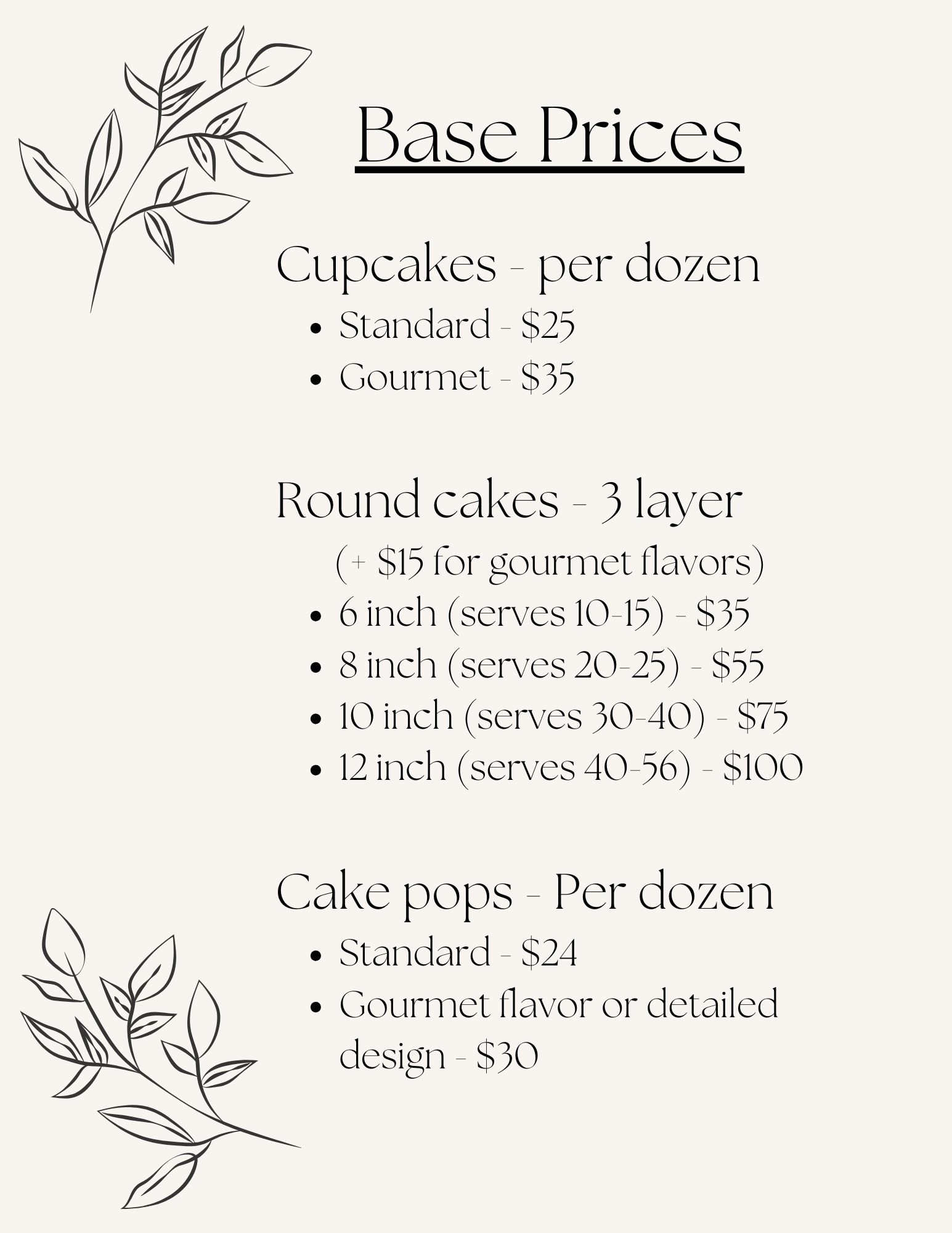 Menu + Pricing